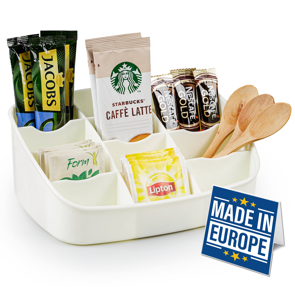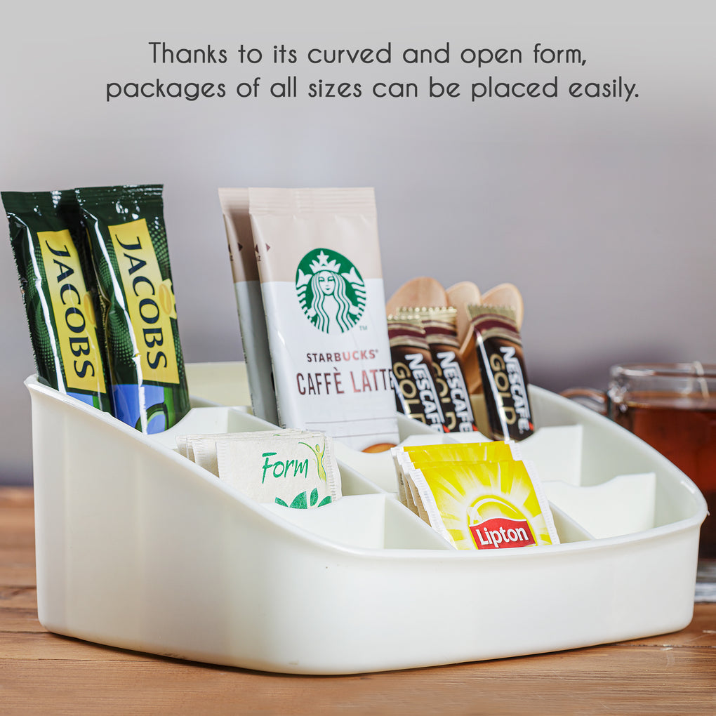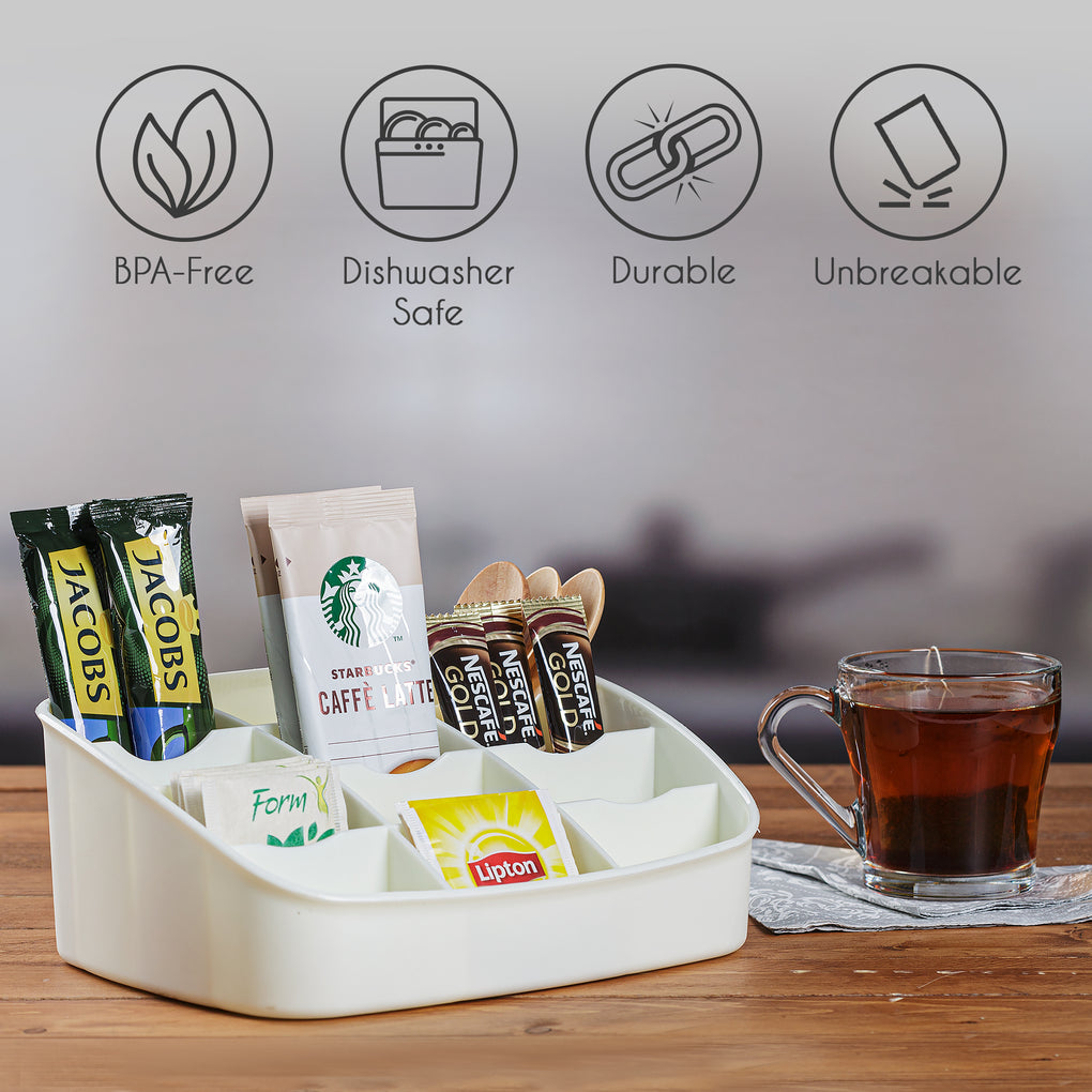 Use it in your kitchen, pantry, office break room, or coffee station. The multi-compartment layout makes it easy to sort and display your favorite tea and beverage essentials.
